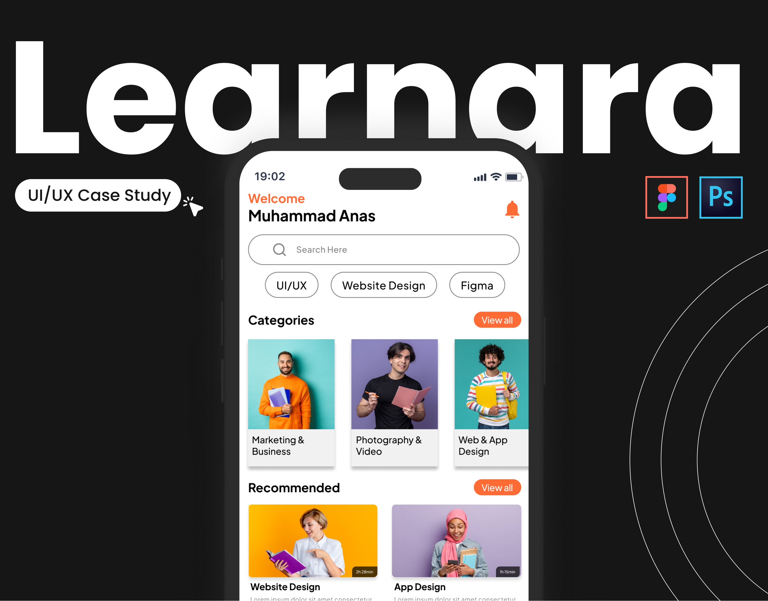Learnara is an e-learning mobile app UI/UX case study crafted in Figma, showcasing a modern-interface,